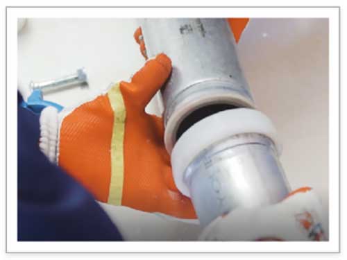 C、復合管壓槽后應在管端佩戴專用的密封膠圈(如上述右圖所示),以阻隔端面進水、杜絕電化學腐蝕;